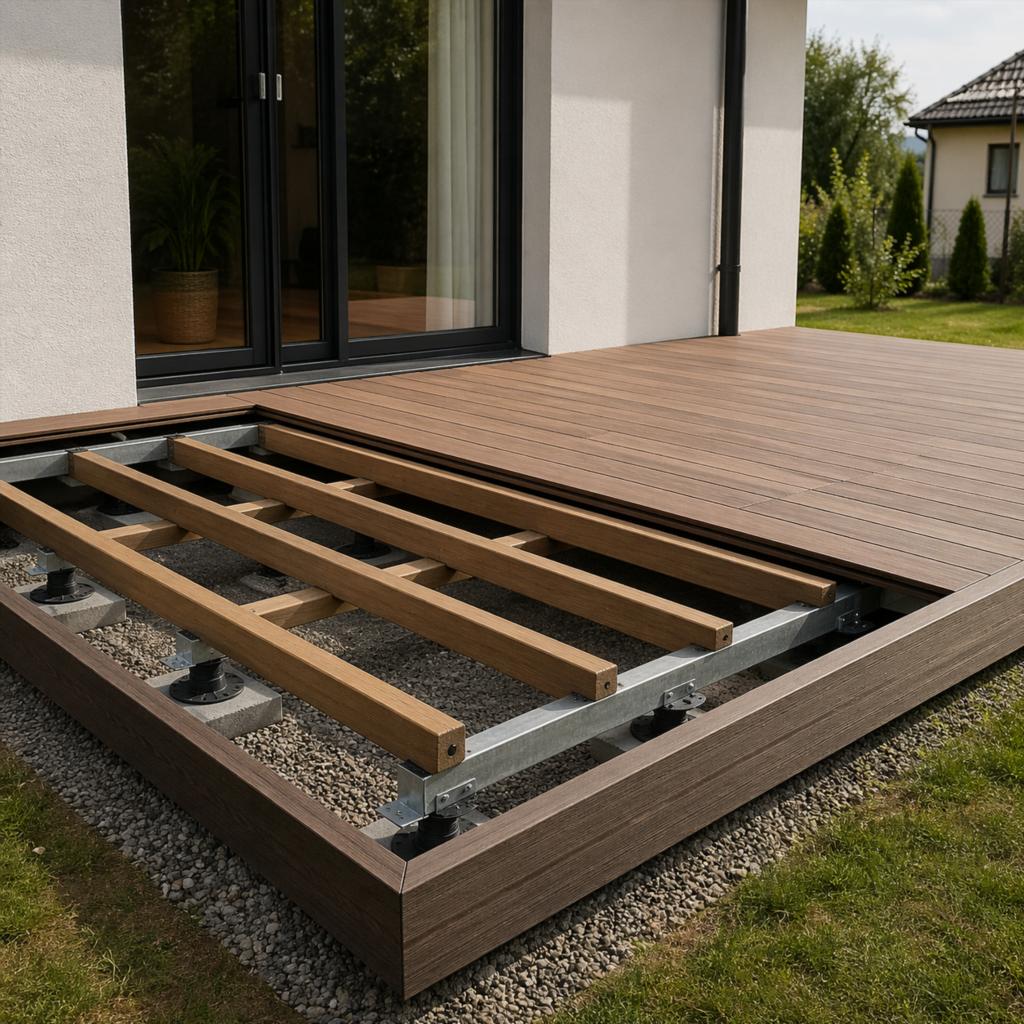 Террасная доска отвечает за внешний вид и комфорт, но она не работает отдельно от основания. Даже прочный материал может начать прогибаться, скрипеть или расходиться в стыках, если под ним слабый каркас. Наружная конструкция постоянно взаимодействует с влагой, солнцем, морозом и грунтом, поэтому ошибки быстро проявляются в эксплуатации.